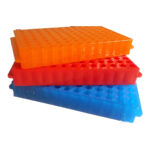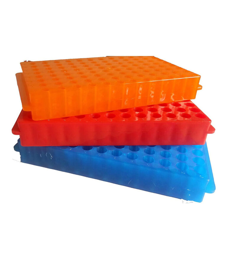 دارای حفرههای استاندارد برای قرارگیری لولههای ۰.۲، ۰.۵، ۱.۵ و ۲ میلیلیتری بوده و در رنگبندی متنوع برای دستهبندی نمونهها و آزمایشها ساخته میشود .